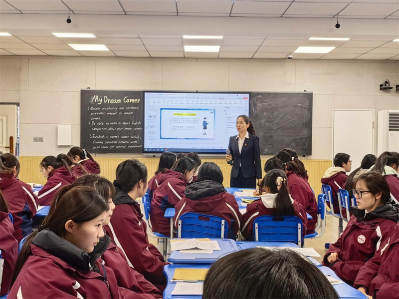 英語:真美英語融職業(yè),規(guī)劃未來展風(fēng)采。英語課堂上,“高中英語與學(xué)生未來職業(yè)生涯規(guī)劃融合課”別具一格。同學(xué)們根據(jù)職業(yè)偏好自由分組,圍繞“職業(yè)規(guī)劃與真美英語課”展開熱烈討論。在討論過程中,大家積極交流想法,碰撞出思維的火花。隨后,同學(xué)們進(jìn)行作文寫作,將討論的成果轉(zhuǎn)化為文字。接著是實(shí)踐輸出環(huán)節(jié),各小組通過角色扮演、情景模擬等方式,生動展示不同職業(yè)場景下的英語應(yīng)用。成果展示后,老師進(jìn)行點(diǎn)評,不僅指出優(yōu)點(diǎn)和不足,還引導(dǎo)學(xué)生進(jìn)行思政升華,讓大家明白無論從事何種職業(yè),都要具備國際視野和社會責(zé)任感。